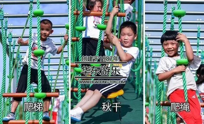 1、爬绳,2、葫芦盘爬,3、秋千绳,4、木头爬,5、吊盘秋千,6、腰鼓爬绳,7、吊环,8、吊杆,9、网座秋千,10、钻圈爬 -