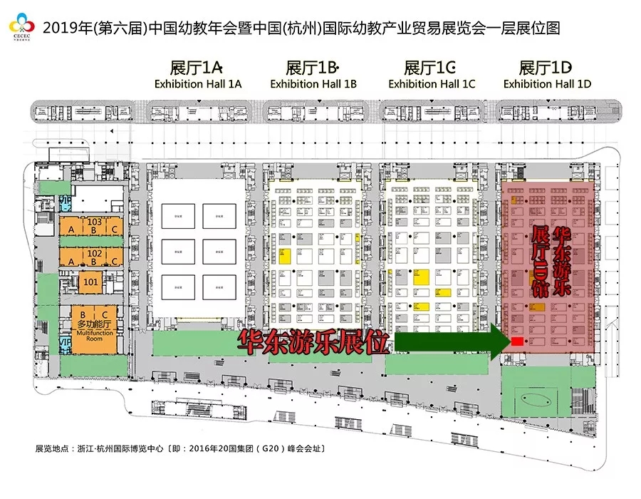 具体位置标示见下图(绿色箭头所指红色方框为乐鱼官网游乐展位):