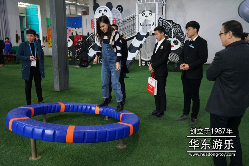 参观人员体验乐鱼官网游乐生产的手动转椅
