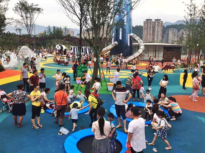 横向空间是固定的,但是我们可以充分利用纵向空间。一方面,可以通过建立小土坡的形式来利用纵向空间。这样既节约了搭构框架的成本,同时,也能让有效的空间得到合理的利用;另一方面,我们可以采取盆地式的构建方式,这样斜坡的位置可以用来摆放滑梯、攀爬架、攀岩墙等游乐设备,而盆地底部则可以放置沙池、蹦床、秋千等等。