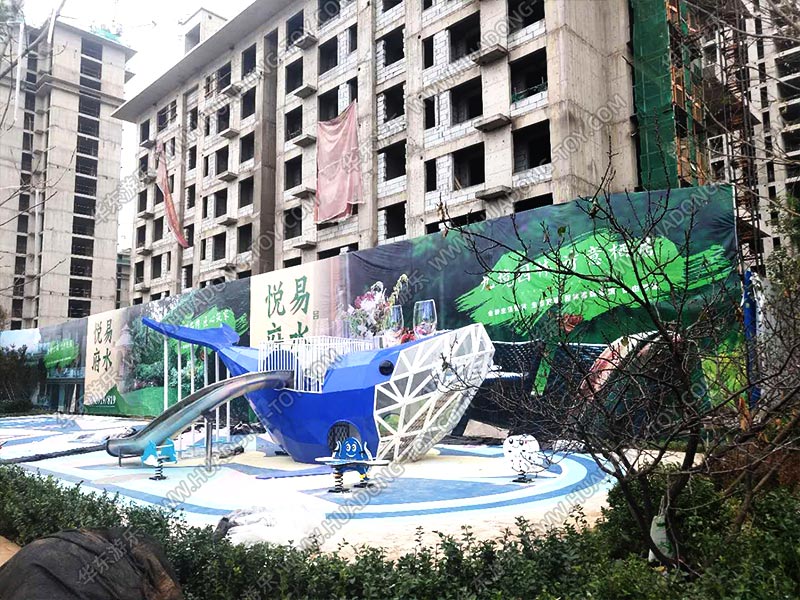 易水悦府房地产项目是一个综合性的休闲、娱乐、生活为一体的生活服务器区,在这里主要为小区业主提供一个可以互动、交流、玩耍的场所,该项目采用了乐鱼官网游乐自主设计的大鲸鱼滑梯为主,附加摇摇马等游乐设施,整个项目设计完美,实用性强,深受业主们的喜爱。