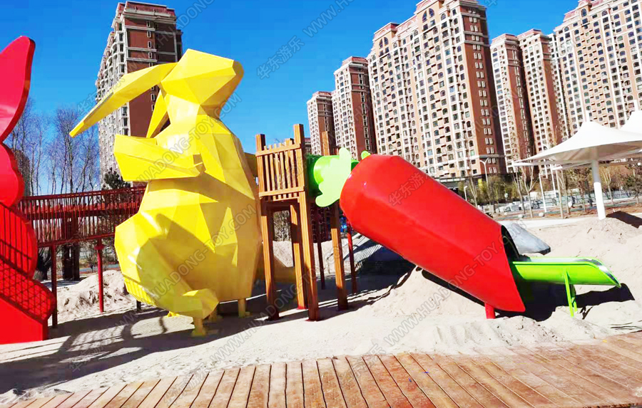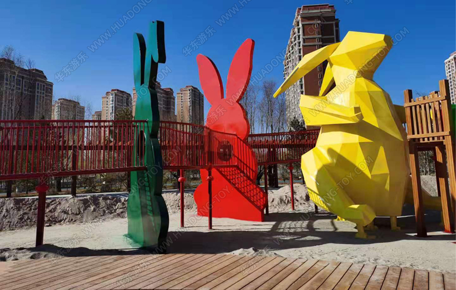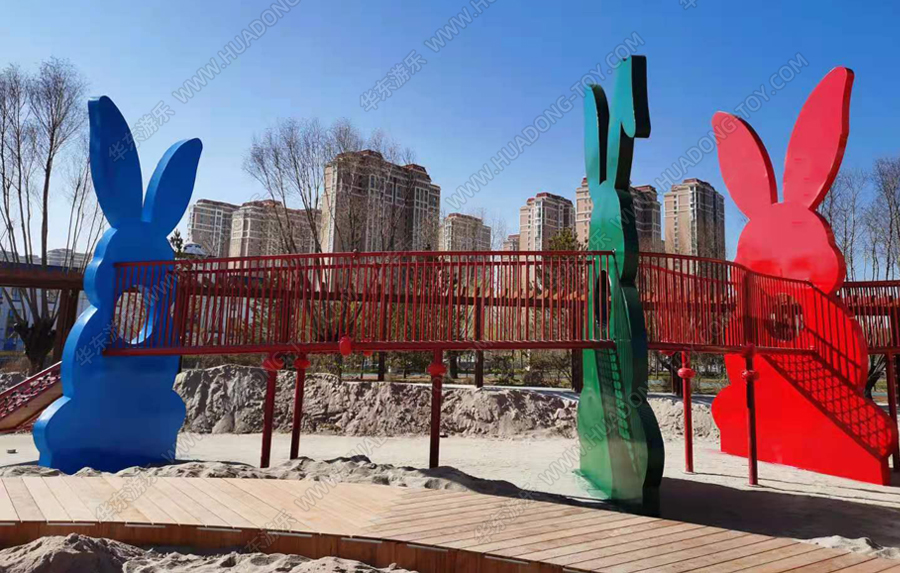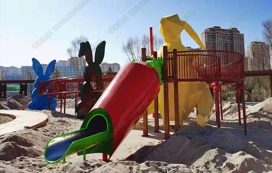 兔子乐园非标定制是乐鱼官网游乐根据客户场地需求以及结合当地实际情况而设计的兔子主题乐园的游乐场,该游乐园具有主题鲜明,设计新颖,功能多样等特点,设计了滑梯组合、爬网、钻洞、沙池等游乐设备。