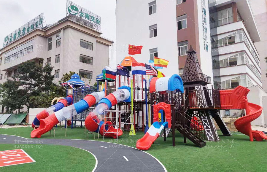 云南省曲靖市麒麟区沃爱可幼儿园是一家综合性的 幼儿园,此次选购的是乐鱼官网游乐自主 研发、设计、生产的跨国梦想欢乐岛系列滑梯,该系列滑梯以欧美标志性建筑为外观模型,具有攀爬、滑梯、钻洞、爬网、滑桶、吊桥等功能,同时配备了万能健身器材、微地形等游乐设备,能够让小朋友在这里愉快的玩耍,也为老师们提供了很好的教育环境和场所。