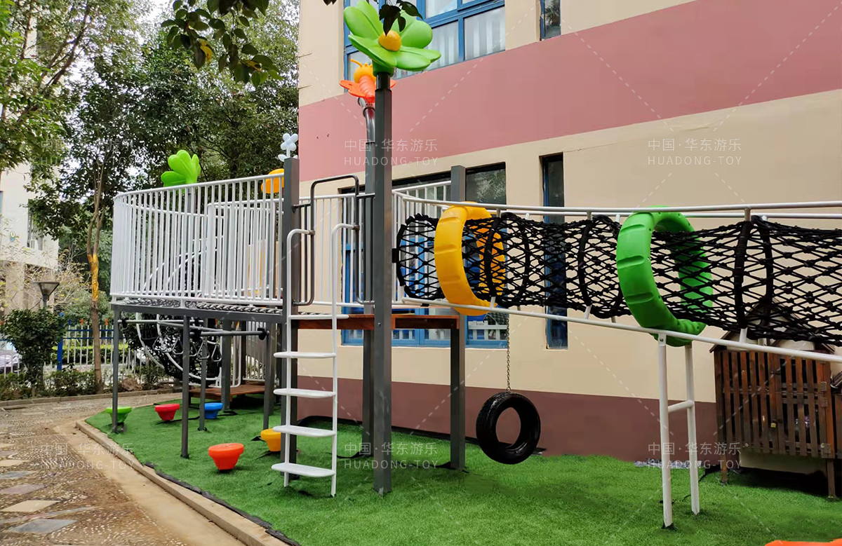 绿都幼儿园选用的是乐鱼官网游乐自主研发的具有攀爬、滑梯、爬网、钻洞、葫芦攀爬为一体的综合性游乐设备。