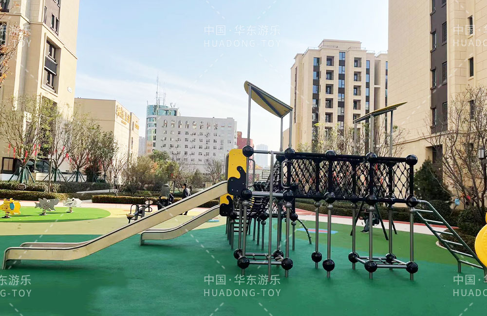 太原华润昆仑域地产项目选用的是乐鱼官网游乐自主研发的游乐设备,娱乐场里选用了健身器材、具备攀爬网、不锈钢滑梯为一体的综合性游乐设备,为生活在该小区的人们提供了一个生活、休闲、娱乐的场所。