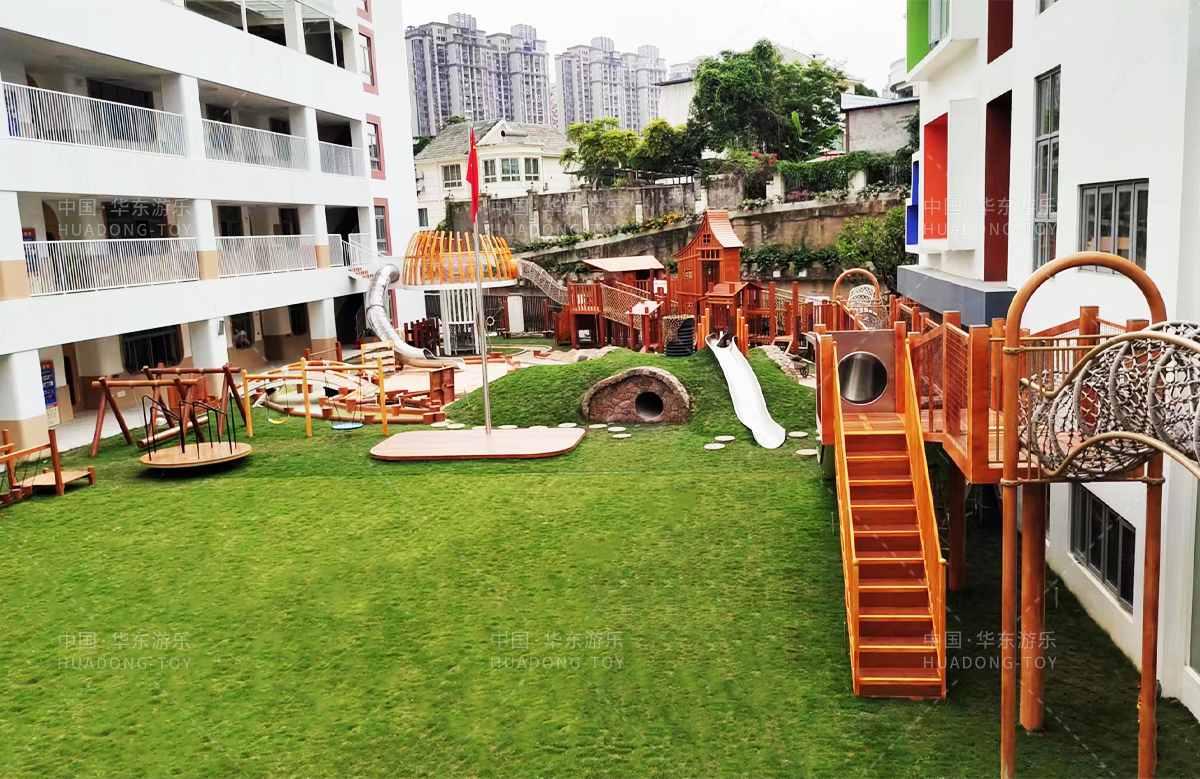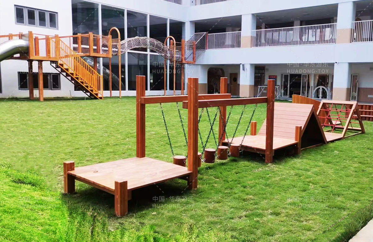 高峰幼儿园是一个专业的学前教育培训机构,此次选用的是乐鱼官网游乐设计和生产的木制非标定制的游乐设备,设计了具有攀爬网、钻洞、秋千、木制拓展、木制小屋、不锈钢滑梯等功能的游乐设备,丰富的功能、优质的设备、让整个校园充满了生机与活力。