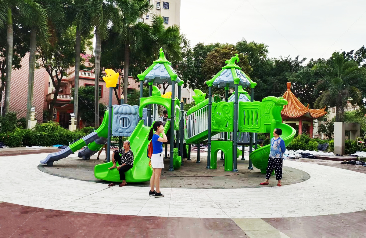 该小区选用的是乐鱼官网游乐自主研发和设计的具有攀爬、钻洞、滑梯为一体的魔法屋系列组合滑梯和动物园系列滑梯,让生活在该小区的人有一个休闲娱乐的场所。