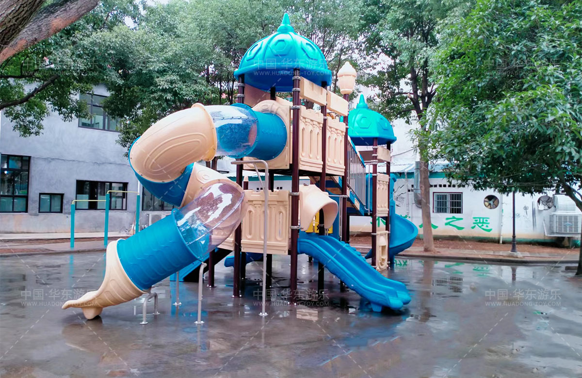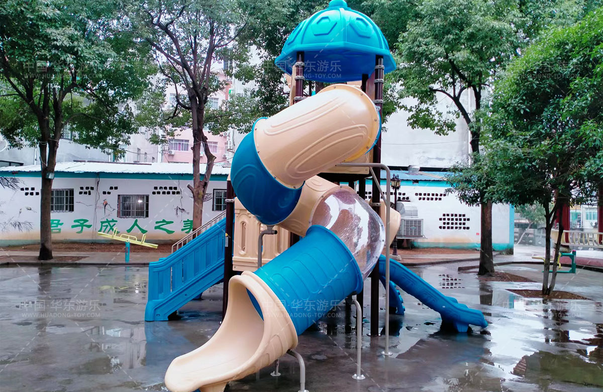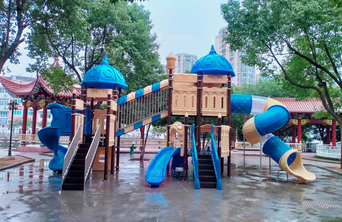 乐清市虹桥镇邬家桥村公园选用的是乐鱼官网游乐自主设计和研发的别墅屋系列滑梯,该滑梯具有 S型滑梯、旋转滑梯、走梯、攀爬墙、钻洞等功能为一体的游乐器械,是一款使用寿命长、安全环保的游乐设备。