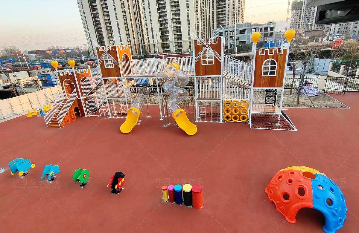 • 青岛市黄岛区黄河西路明秀和府幼儿园是一个社区改造的幼儿园项目、整个项目分为南北两个校区,每个校区根据自己校园的环境和不仅选择了不同类型的游乐设备,为小朋友的健康成长提供了保障,也为老师的教学提供了帮助。
