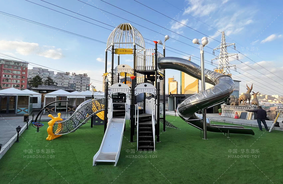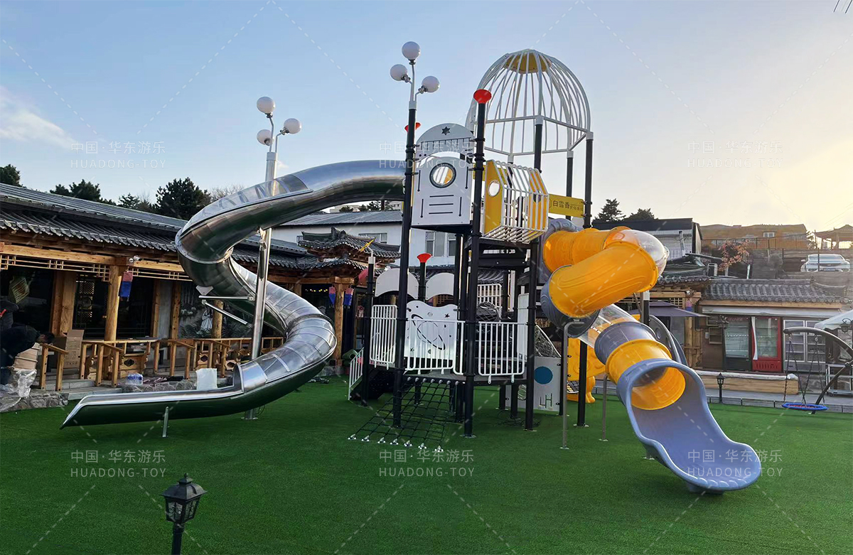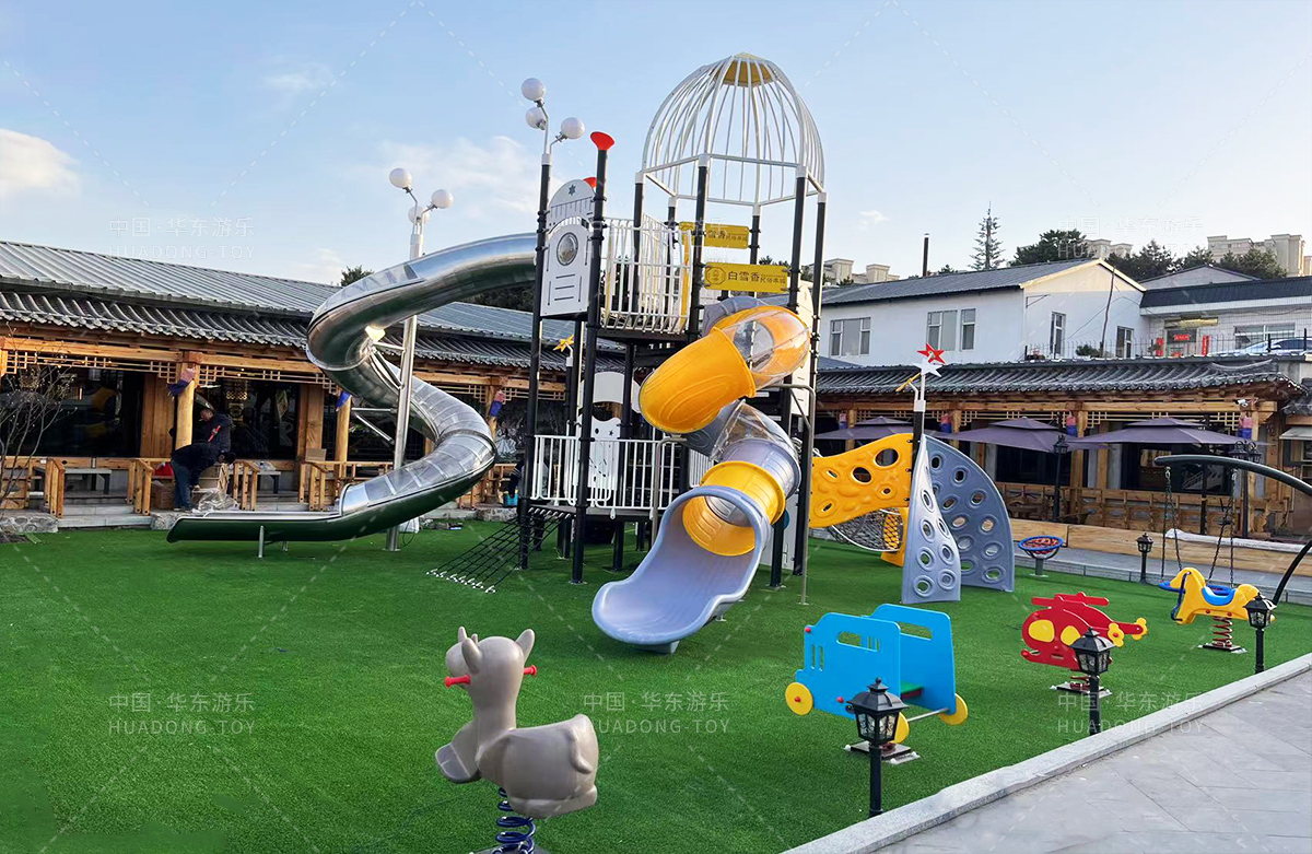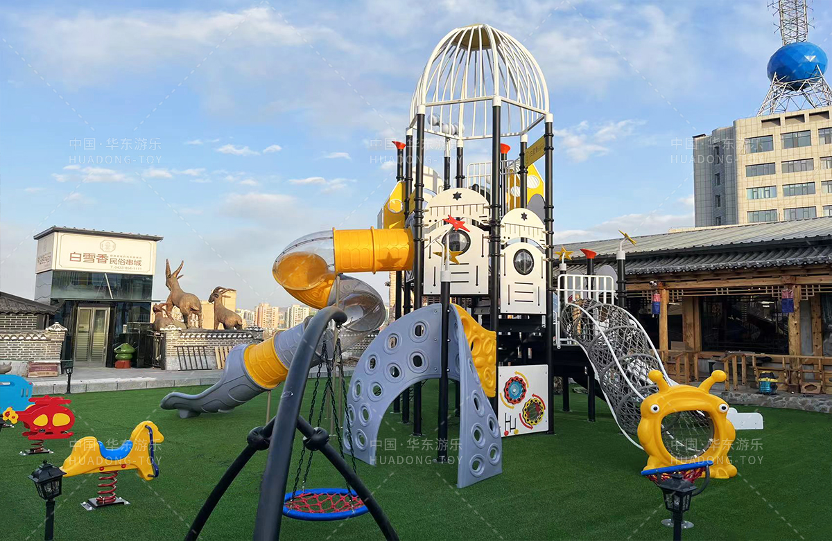 吉林省白雪香民俗烧烤城是一个专业的休闲夜宵烧烤城,此次选用的是乐鱼官网游乐自主研发和设计的 PE板系列滑梯,卡通的造型,齐全的功能深受小朋友们的喜爱,同时还设置了小朋友喜欢的儿童摇摇乐、组合秋千、 旋转碗等游乐设备。