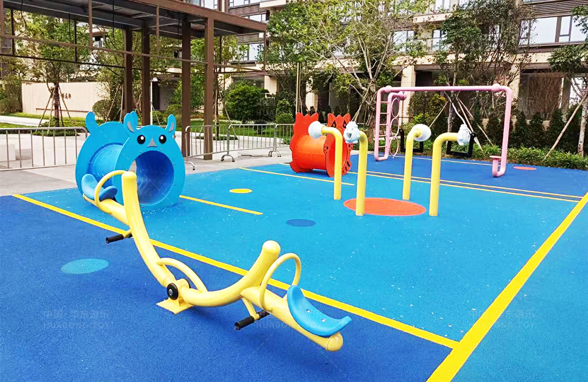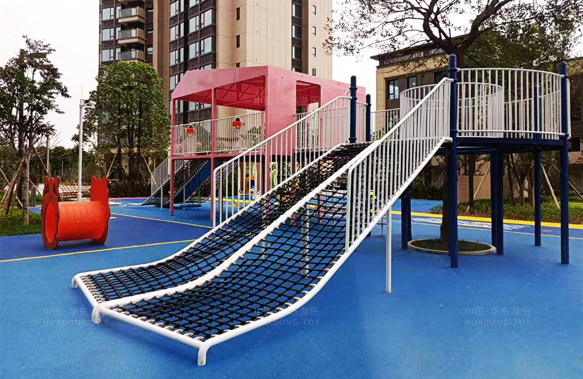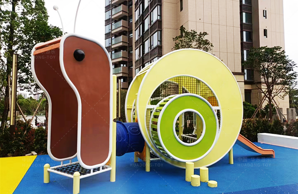该房地产选用的是乐鱼官网游乐设计和生产的非标定制系列的游乐设备,分别设置了跷跷板、摇摇乐、钻洞、传声筒、蜗牛主题组合滑梯,以及具有钻洞、攀爬网、攀爬绳、攀爬梯等功能为一体的空中小屋的游乐设备,该游乐园的建设不仅仅丰富了小区人们的休闲生活,还为小朋友提供了一个休闲、娱乐的场所。
