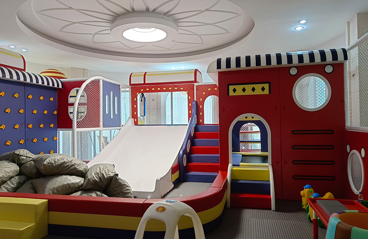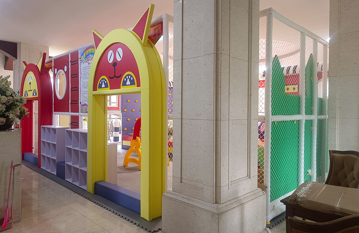 • 为了更好的让孩子们有一个玩耍的场所,该项目选用了海洋球、攀爬墙、旱雪滑梯、儿童秋千、儿童蹦床、游戏迷宫等功能为一体的室内淘气堡儿童乐园,为小朋友的健康发展提供了保障。