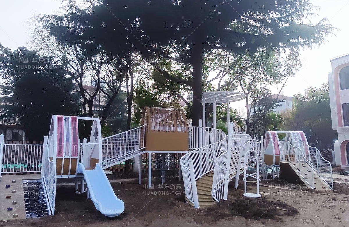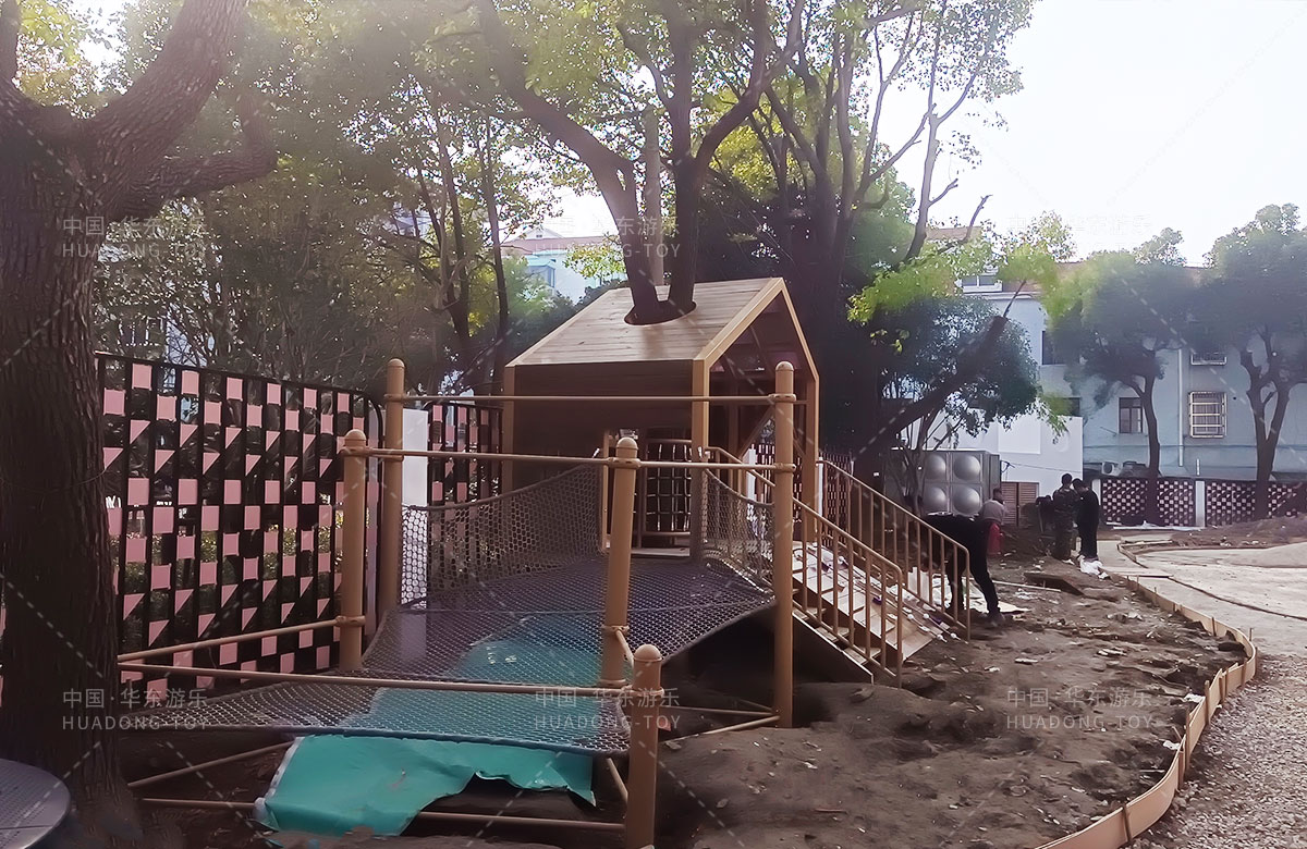 虹口区实验幼儿园简介创建于1993年9月。1994年定为一级一类幼儿园。儿园具有现代化的设施和美丽童趣的园舍。总占地面积4800多平方米。建设面积3000多㎡。绿化面积1800多㎡。 此次幼儿园游乐项目选择的是乐鱼官网游乐自主研发和设计的一款综合性木质系列非标定制产品,不仅功能齐全,主体性也非常的适合幼儿园的场景设置。