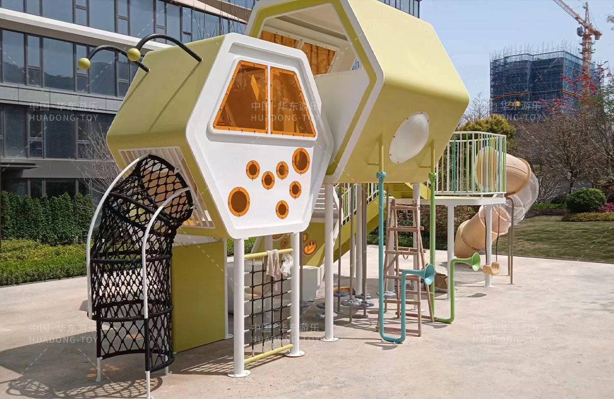 该项目选用的是乐鱼官网游乐自主研发和设计的以蜜蜂巢穴为主题的游乐园,具备了大型滑梯、攀爬网、传声筒、儿童秋千、平衡杆等功能,同时为了更好的关注老年人的晚年健康,该项目还设计了不同功能的成人健身器,让更多的人群有一个休闲、娱乐、健身的场所。