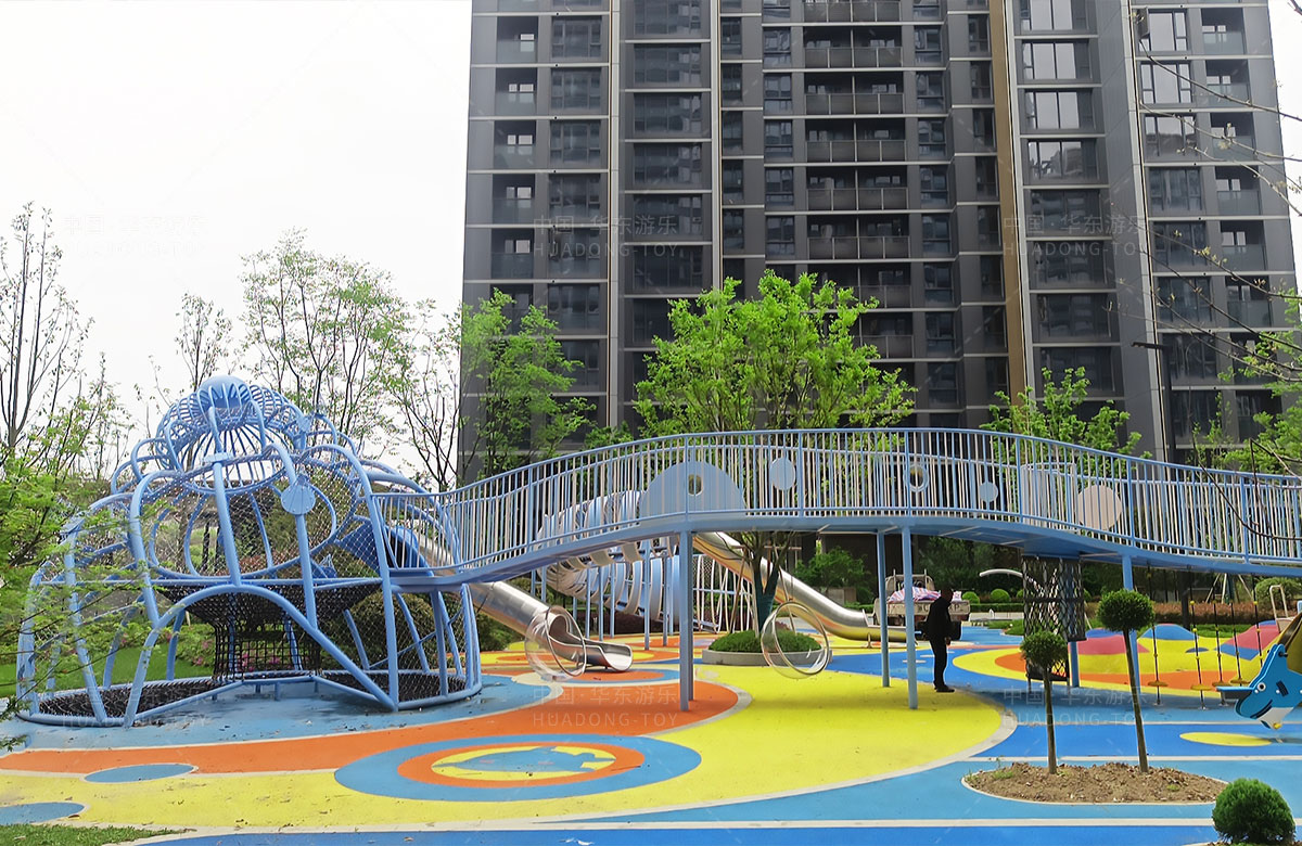 温州德信是一家高端居民小区,为了更好的提供高端的服务,该小区选用的是乐鱼官网游乐自主研发和生产的以“田螺公主”为主题的综合性游乐园,设置了孩子们喜欢的钻洞、攀爬、秋千、摇摇乐、翻翻乐、不锈钢滑梯、攀爬网等功能的游乐设备,不仅丰富了小区的生活,也为孩子们的玩耍提供了一个很好的游乐场所。