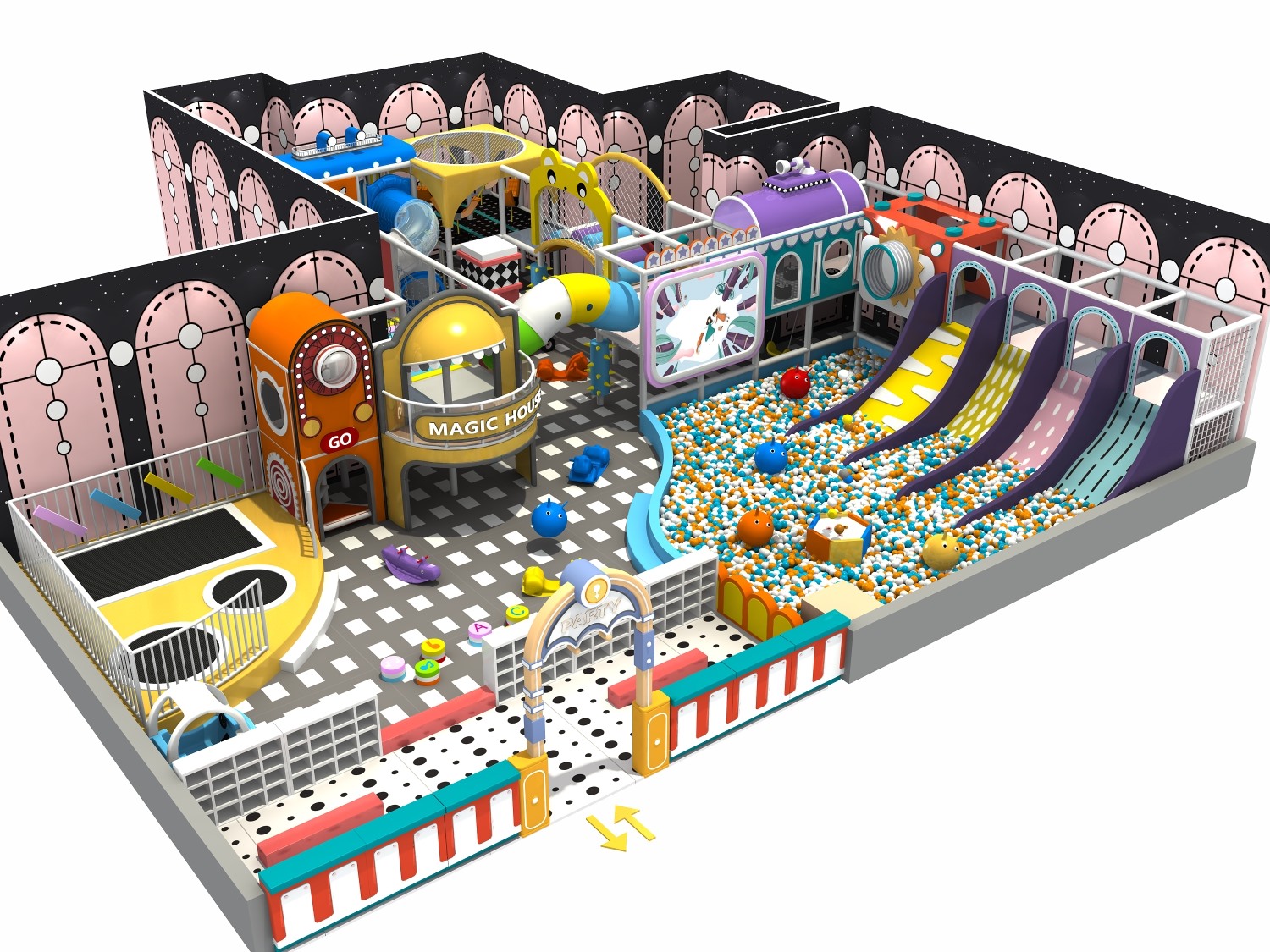 • 室内淘气堡又称室内儿童乐园,是针对儿童生理能力与心理特点喜欢钻、爬、滑、滚、晃、荡、跳、摇等玩耍动作而设计的综合性室内休闲娱乐场所。乐鱼官网游乐淘气堡项目具有多样性、互动性和安全性的特点,儿童在玩乐的同时能培养独立的个性,团队协作能力,沟通能力、克服困难、积极进取的精神,锻炼身体、健脑益智。