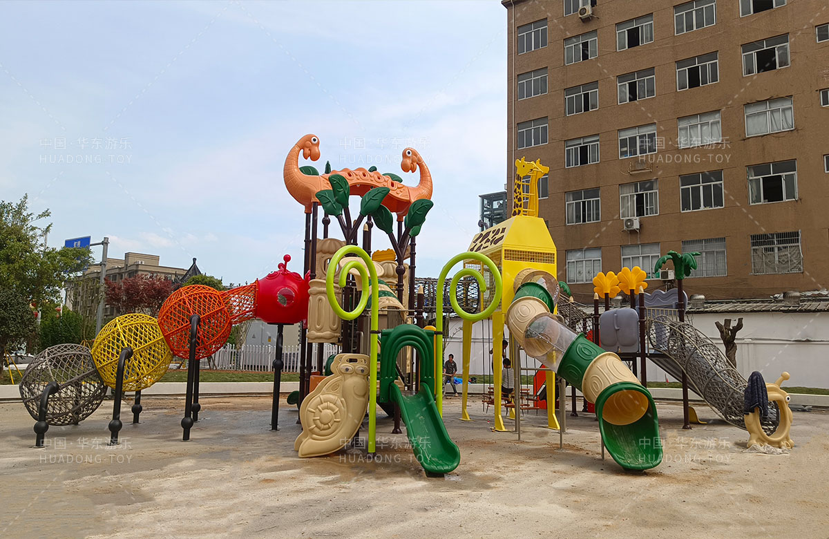 乐清市溪西工业园区休闲文化生态园是一个免费的文旅公园,主要为生活在这里的人群提供一个休闲、娱乐、遛娃、健身的场所,在该项目中选用的的乐鱼官网有了自主研发和生产的动物系列组合滑梯,该滑梯具有功能齐全、玩法多样、颜色艳丽等特点,除此之外还新增了儿童 摇摇乐、组合秋千、跷跷板、打击乐器、脚踏旋转座椅等游乐设备。