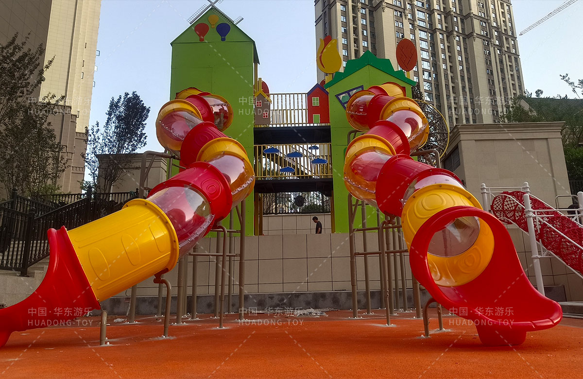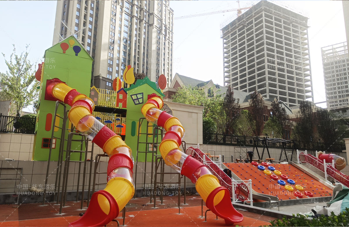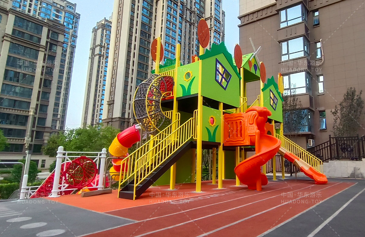 德福房地产骏景御园选用的是乐鱼官网游乐自主研发和生产的趣味小屋为主题的游乐设备,整个场地分别设置了小朋友喜欢的组合滑梯、旋转座椅、不锈钢滑梯、组合秋千、各种类型的拓展游乐设备,不仅仅丰富了小区的生活,也为孩子们的健康成长提供了保障。