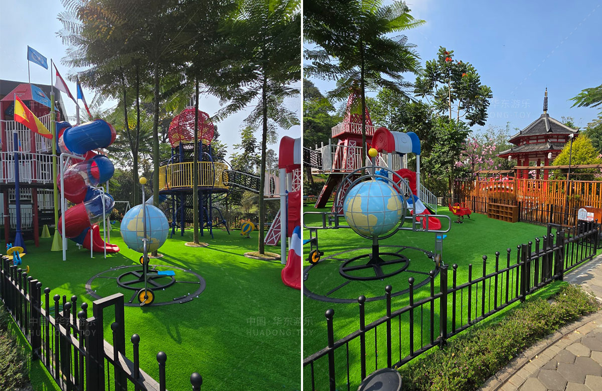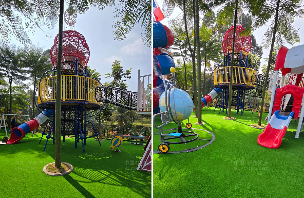 该项目选用的是乐鱼官网游乐自主研发和设计的跨国系列组合滑梯,该滑梯具备了攀爬网、钻洞、滑梯等功能,同时为了让整个游乐场变得更加具有生机与活力,整个项目还设置了小朋友喜欢的儿童摇摇乐、儿童跷跷板、以及地球旋转自行车等游乐设备,为当地的人群体提供了一个休闲娱乐的场所。