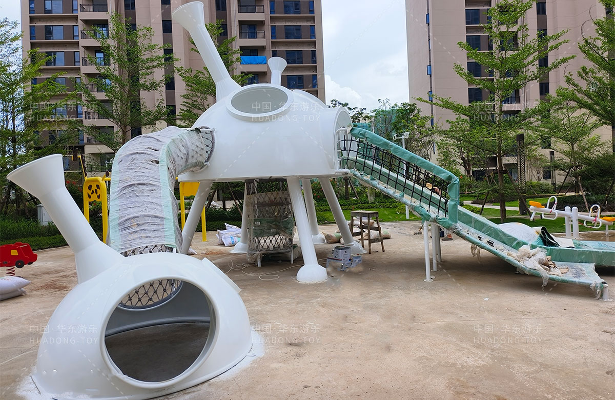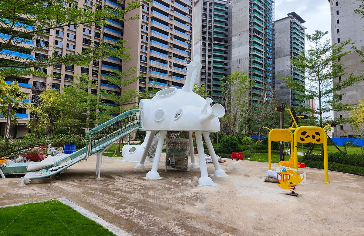 • 该项目是一个地产类型的公园配套设施,整个游乐园采用的是飞碟主题的儿童游乐园,为了更好的让孩子们有一个愉快的童年,该游乐园分别设置了非标定制的组合游乐设备、儿童跷跷板、儿童秋千、儿童摇摇乐等游乐设备,该乐园的建设不仅为小区带来了更多的生机与活力,也为孩子们的健康成长提供了一个很好的场所。