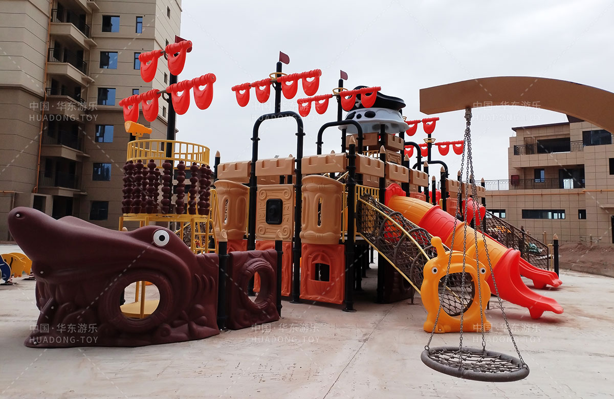 该项目选用的是乐鱼官网游乐自主研发和设计的以海盗系列为主题设计的海盗船系列组合滑梯,该滑梯具备功能齐全、颜色艳丽、使用寿命长、安全环保等特点,是一款非常受小朋友欢迎的组合滑梯,除此之外还设置了小朋友喜欢的儿童摇摇乐、秋千等游乐设备,同时还专门设计了健身区,为生活在当地的人群提供了一个休息、娱乐、遛娃的场所。