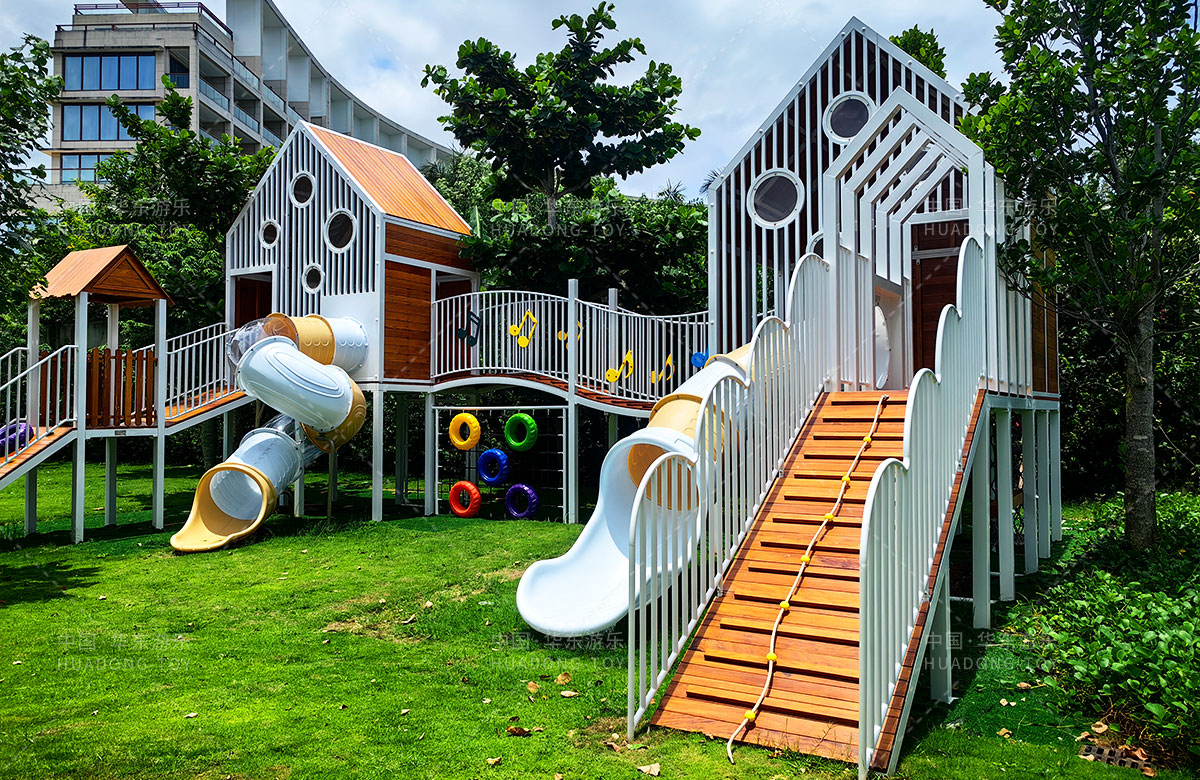 三亚天涯蓝海度假酒店是一个高端的休闲、旅游度假酒店,为了更好的为各位客户提供更加高端和更加完美的旅行服务,该酒店选用了乐鱼官网游乐自主研发和设计的非标定制的多功能组合游乐设备,该设备具备了攀爬绳、攀爬网、旋转滑梯、游戏小屋等系列功能。