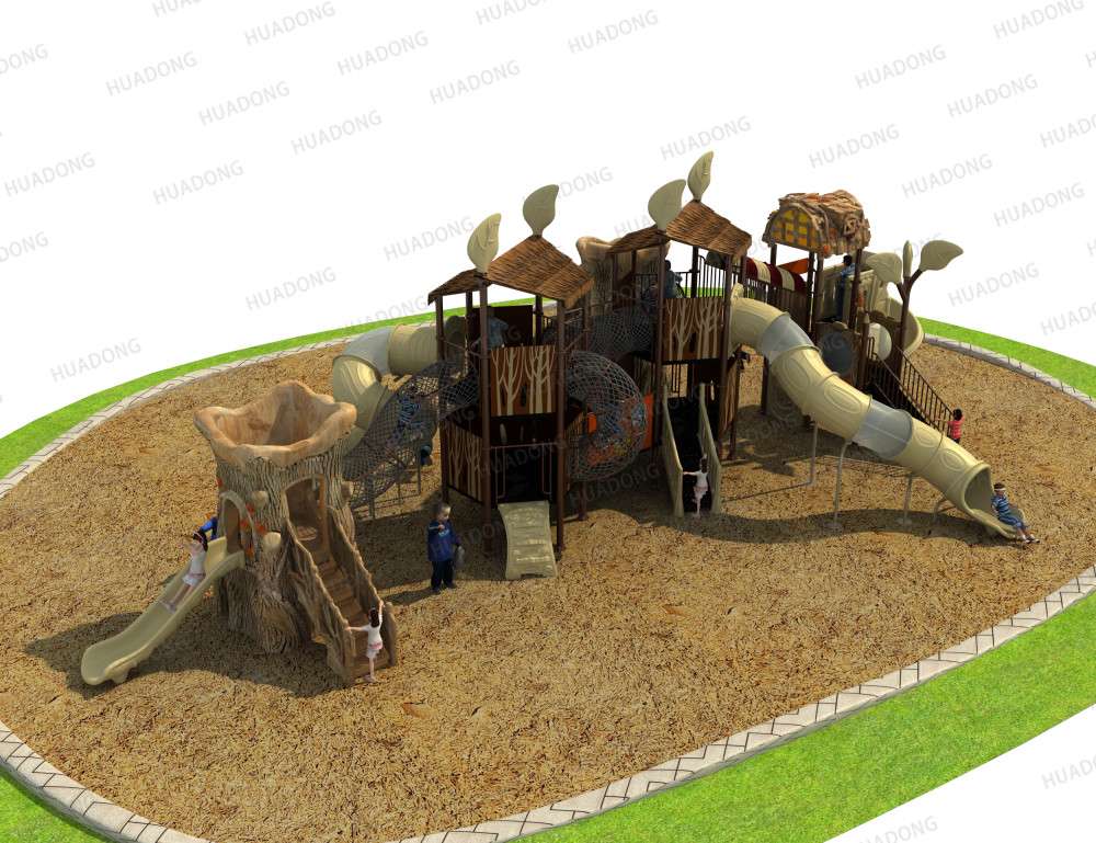• 远古部落系列虽然名字带着“古”字,但是在设计细节处无不透露着艺术与创造性。当孩子在仿真树中探索、冒险、嬉戏游玩时,就像穿越到古老的神秘森林;粗略的树干包围着他们,头顶是高耸的茅草屋,触感真实的枯枝走廊,还有随处可见的小动物们…… 远古部落系列旨在打造区别于其他系列带给孩子们的新鲜感,让孩子们找设计者打造的神秘世界中获得冒险的乐趣。